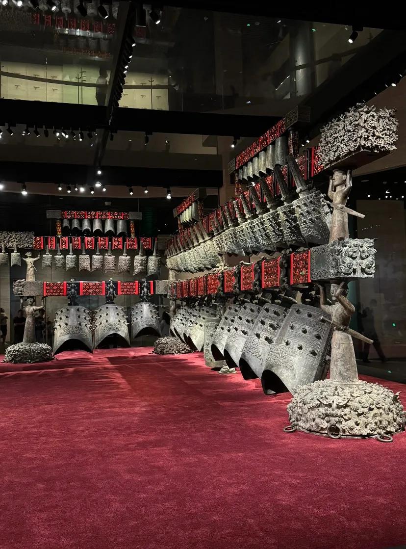 展出基本主题就是“泱泱华夏 择中建都”,以中原的建都历史为主线,河南博物院把每个朝代按发展史的文物分门别类的摆放在各个展馆,能明了的通过文物分辨出时代的变迁,展示了华夏文明的发展轨迹,展现了中原都城文化以及中原文明的源远流长。面对5000年华夏文明,不知道该用怎样的形容词去形容这些国家宝藏。此外,一楼华夏古乐团用古乐器演奏的音乐盛宴。