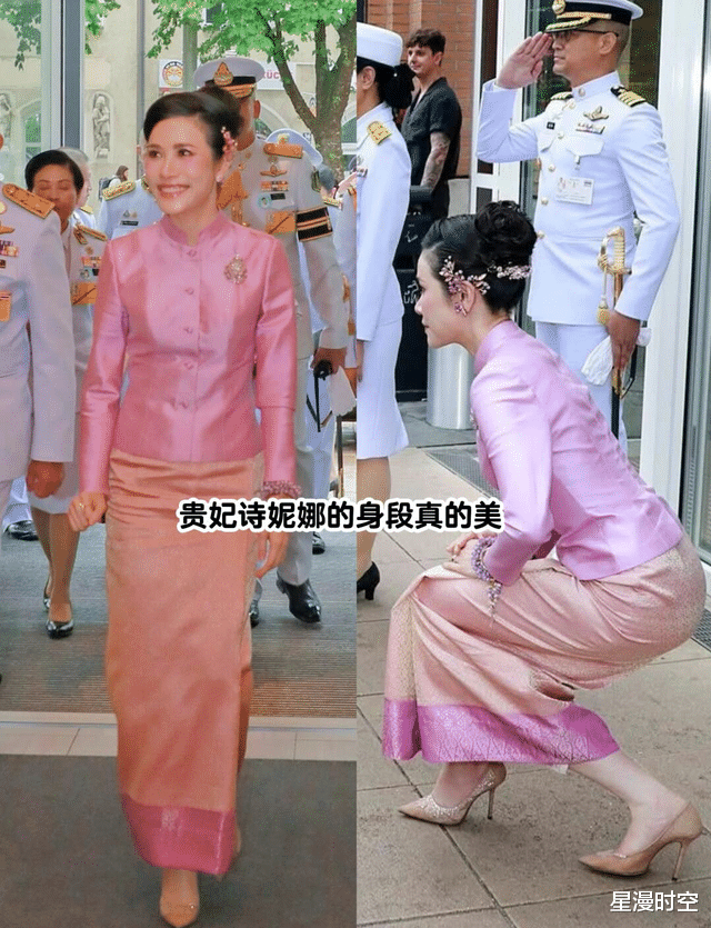 说到行礼,就不得不佩服诗妮娜的功底。众所周知,泰王室的礼节出了名的繁琐,但诗贵妃却能做到身形优雅,动作行云流水。有网友调侃道:“真是不可思议,衣服那么紧,高跟鞋那么高,做那么高难度的动作,还能流畅优美,换我趴下去估计就起不来了。”