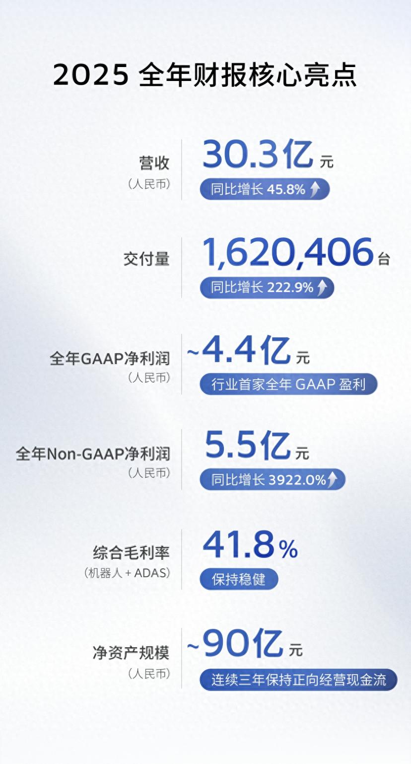 这是一份带有明显分水岭意义的成绩单:全年营收30.3亿元,同比增长45.8%;GAAP净利润4.4亿元,成为全球首家实现全年盈利的激光雷达上市公司。