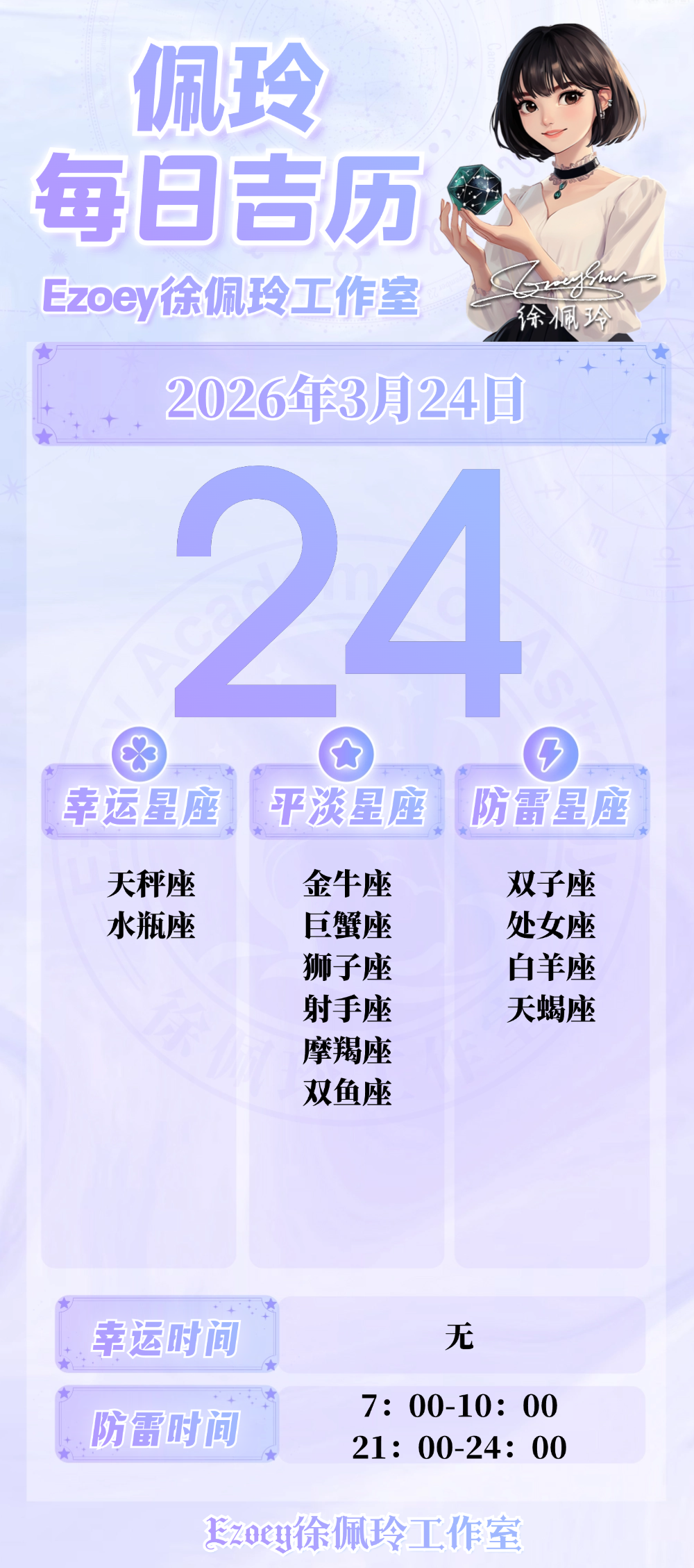 【3.24日播报】轻度预警日 幸运星座:天秤座、水瓶座——Ezoey徐佩玲26年星座播报