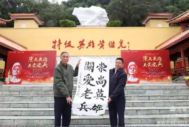 志愿军研究分会请军旅书法家刘建武书写“崇尚英雄 关爱老兵”赠予中江县退役军人事务局。