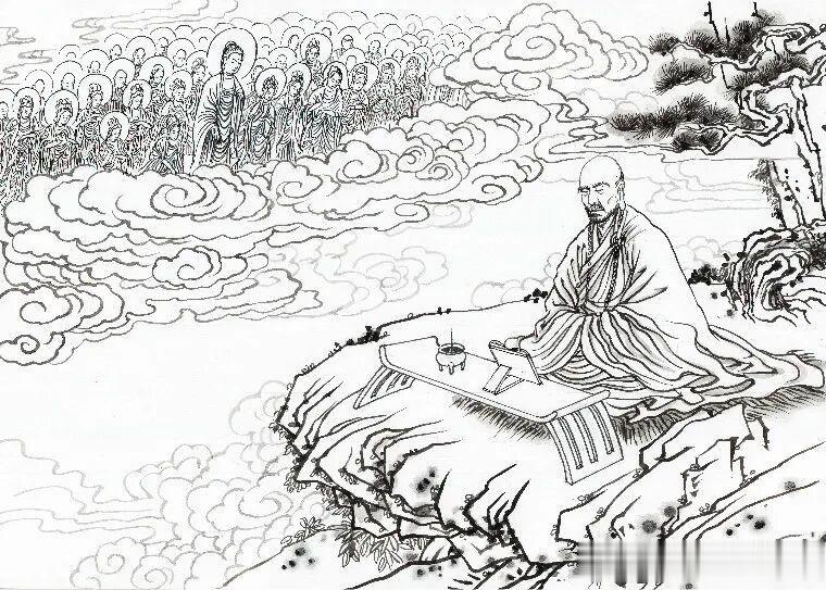大师后婴疾病,以念佛而得治愈。继思念佛一门,文殊、普贤等诸大菩萨,马鸣、龙树等诸大祖师,智者、永明、楚石、莲池等诸大善知 识,皆羡归心,遂终止参禅,归心净土。