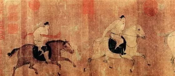 穿着袍服的金人,挥舞着旗帜,放马牧羊。