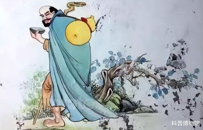 铁拐李善于医术,他经常背着一个装有仙药的葫芦,降到人间治病救人。