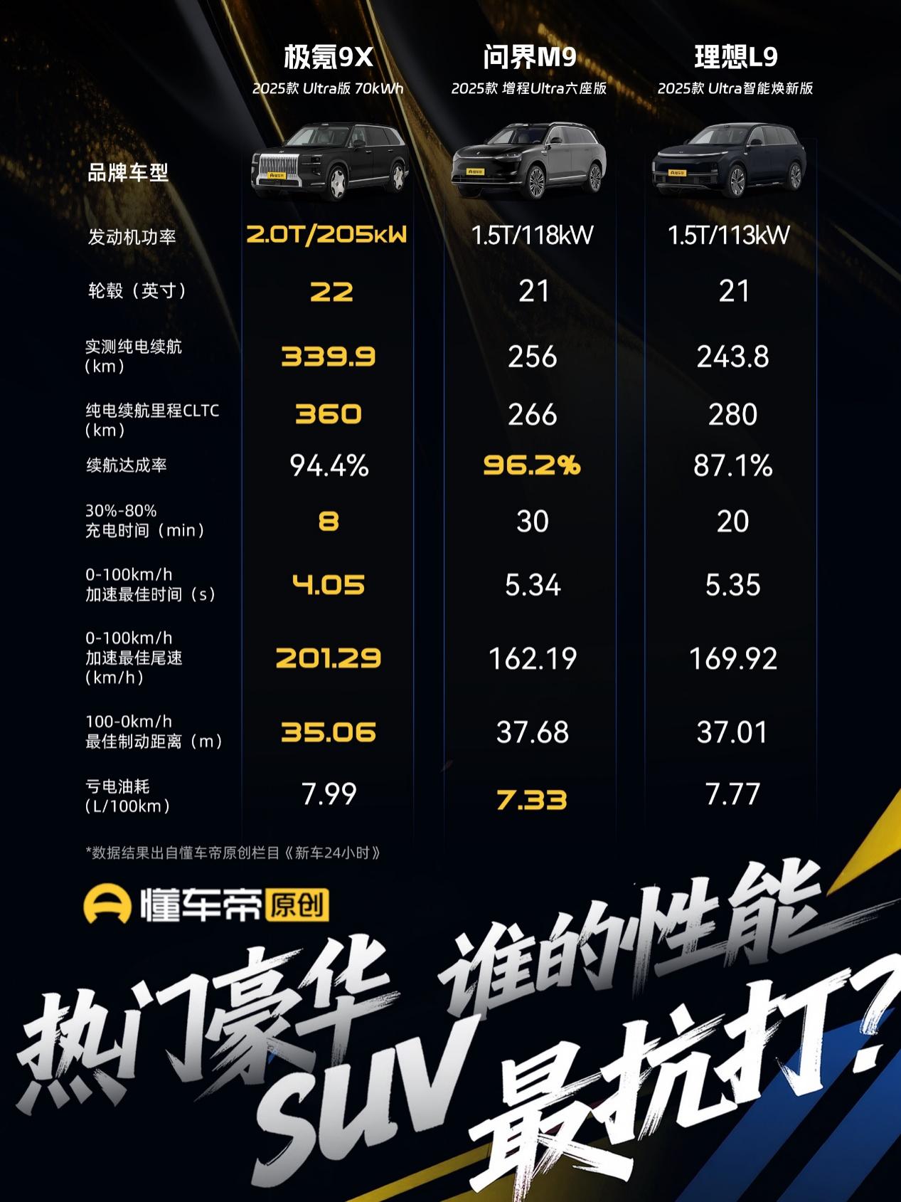看完懂车帝对这三台热门9系SUV的实测,感觉混动市场的竞争焦点真的变了。以前大家可能更关注车机屏幕大小或“座椅沙发”功能,但现在不一样了,开始回归到最基础也最考验功底的性能与效能层面。