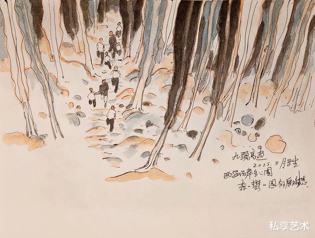 溫哥華西岸游记文丨李振军温哥华西岸灯塔园图之一-21cmx28cm-纸本设色-2025温哥华西岸灯塔园乙巳夏游灯塔园,园