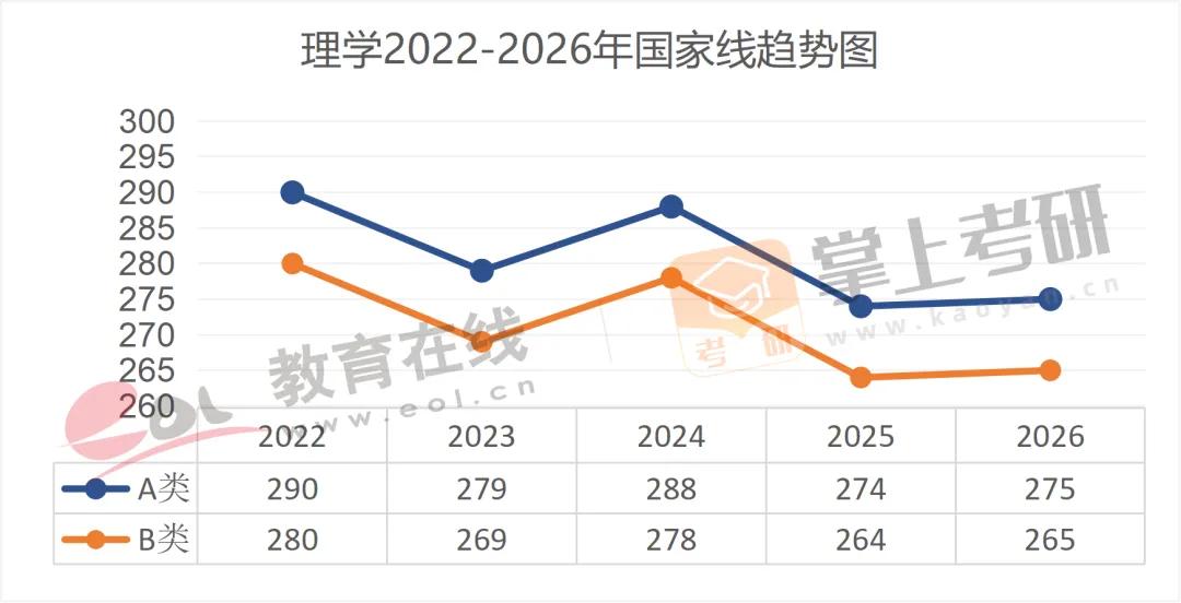 结合2026年国家线最新发布情况,我们为大家整理了近五年学硕、专硕国家线趋势图,直观呈现分数线历年变化,方便考生对比参考。