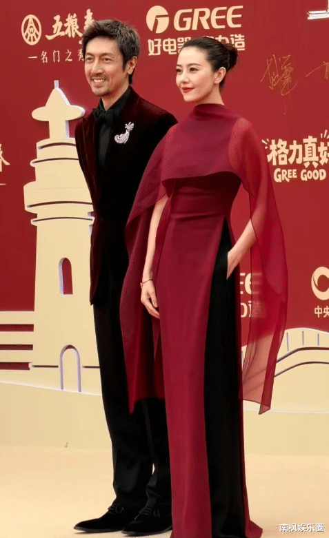 比高圆圆小一岁的张鲁一在她身旁,硬生生被映衬成了“小老头”。