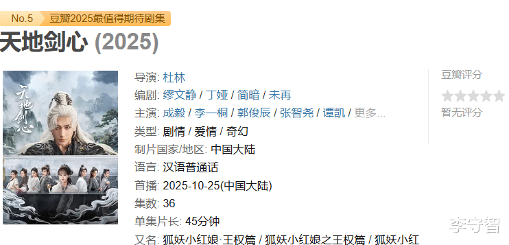 而人气最高的成毅李一桐的新剧《天地剑心》,播出时间与其他几部差不多,却拖延着迟迟不开分,不知道是没有信心,毕竟成毅上一部《赴山海》那么火也没及格,所以害怕担心影响收视。还是其他原因导致没开分。