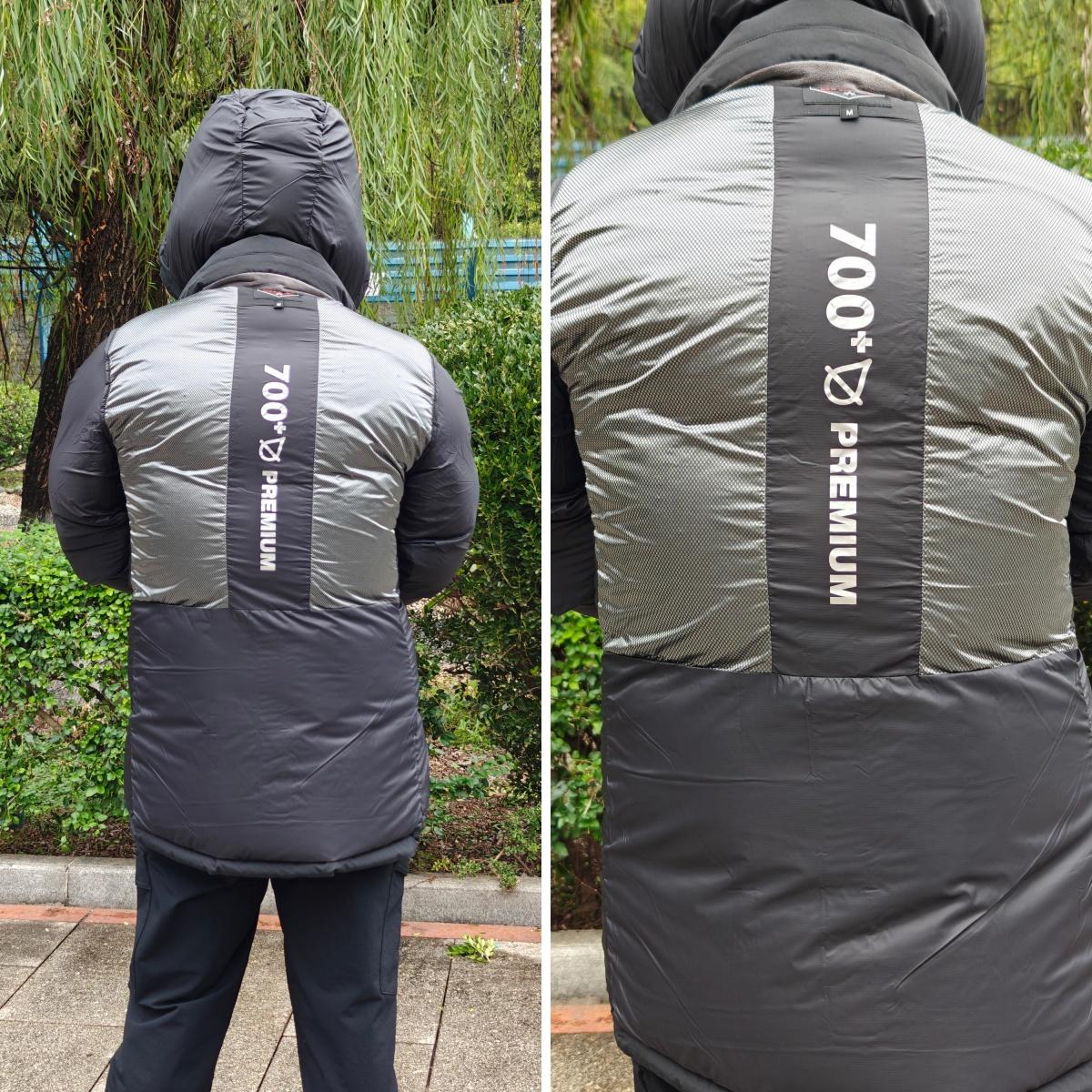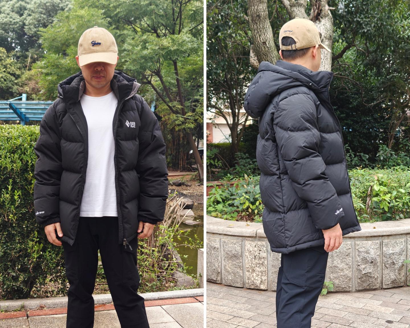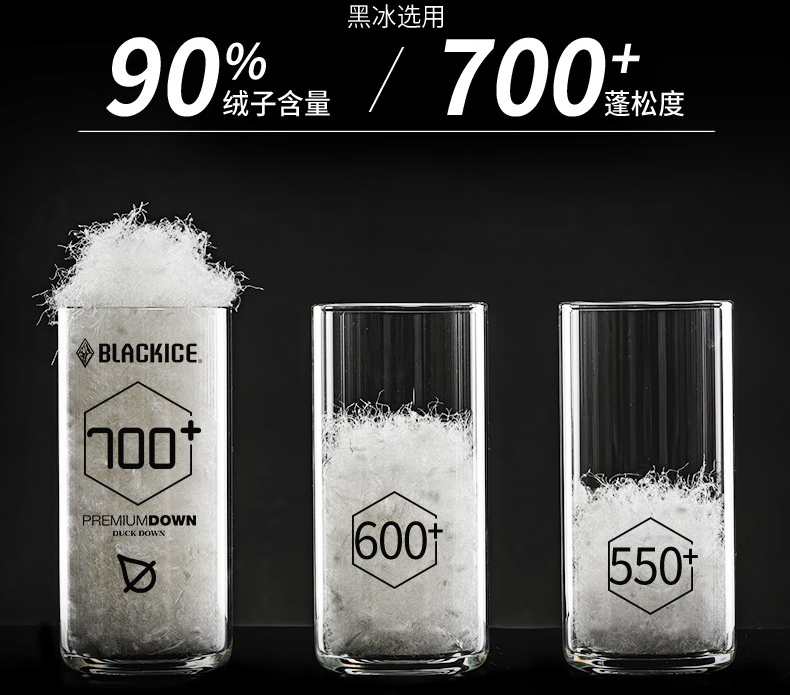 黑冰对羽绒蓬度有细致的分级,有600、700、800、900之分,这叫专业。我这件的蓬度为700,不算顶级,但这种蓬度更容易穿搭造型,不至于臃肿。而且中等蓬度,充绒相对高蓬度更多,例如我这件M码充绒280克,算算白鹅绒的价格,很可以的。