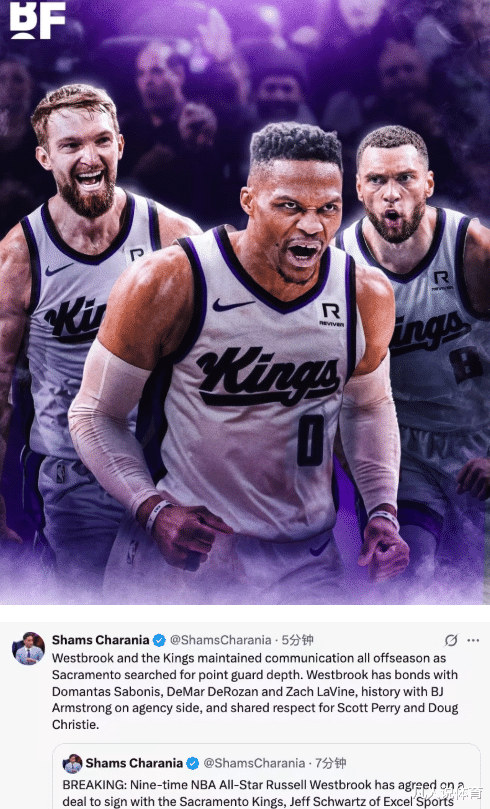 结语:传奇仍在继续威少加盟国王队,不仅为球队带来了实力上的提升,也为联盟增添了更多的看点。作为一名曾经的 MVP 和九届全明星球员,威少的每一次出场都承载着球迷的期待。