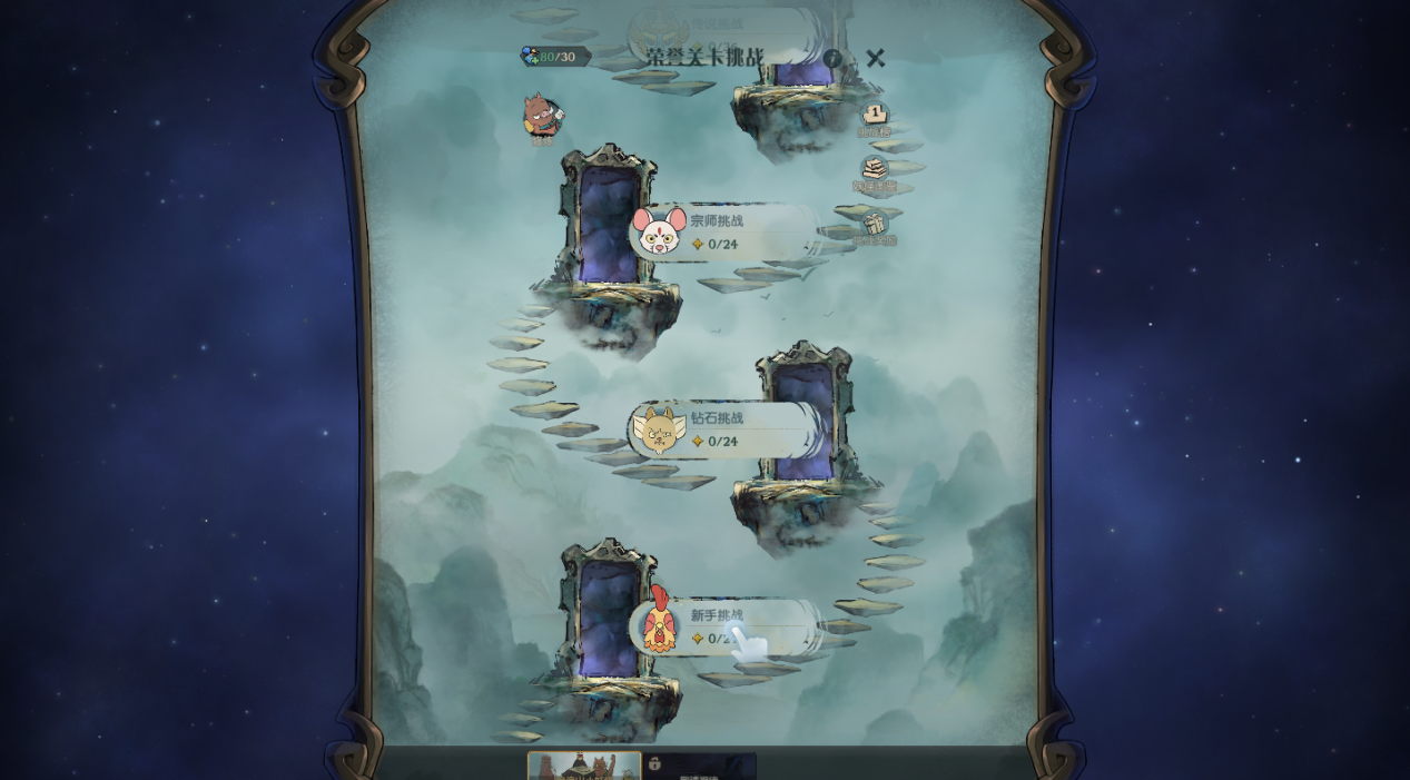 如果通关的时候遇到困难,无法前进,别忘了和来自浪浪山的小妖怪们一起修炼,它们会为卡牌大师提供一些帮助,通关后会根据结算的星星数量获得对应倍数的【灵石】,使用灵石可修炼天赋,强化你的英雄和随从。
