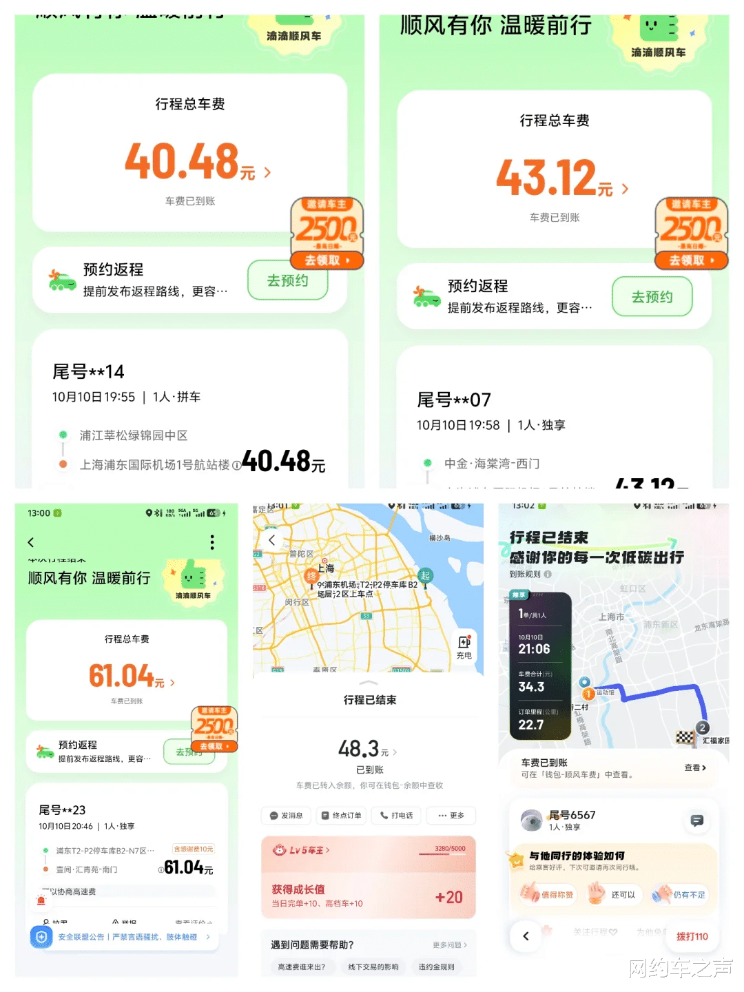 之前的时候评论区还有骂我的,在我看来纯纯杠精,说现在上海的顺风车时薪只有多少多少,说我晒出来的订单截图都是假的。我觉得实在不行,这些不信的,跟着我跑一天车算了。
