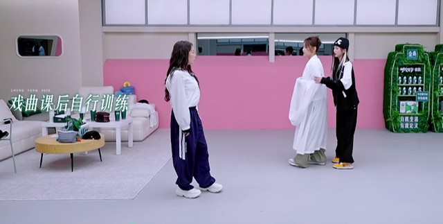 戏曲老师教陈德容动作,吴宣仪也在旁边跟着学,而VaVa在一旁全程录像。