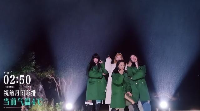 直到凌晨三点,祝绪丹队的姐姐在四度的低温下,只能顶着大棉袄淋雨彩排。