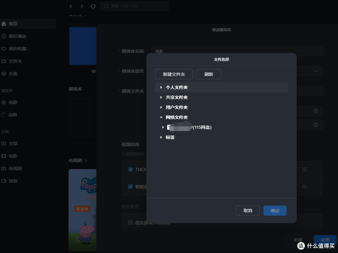 那么现在有趣的事情是这样的。视频文件可以使用网络文件夹,所以那些看完不再看的电影啥的可以直接放入网盘,毕竟电影这东西,占地又大又不会来来回来观看。