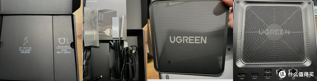 接口方面则是hdmi口,usb3.2口,双usb2.0,接下来就了不得了,一个万兆网口加一个2.5G网口,还有一个重置口和电源口。大家都知道nas这个东西,网线一插,谁都不爱,不像其他设备需要这么多插口,绿联给到了堪称大满贯接口,除了当nas使用,可以说直接能当一台主机使用也不是什么问题。