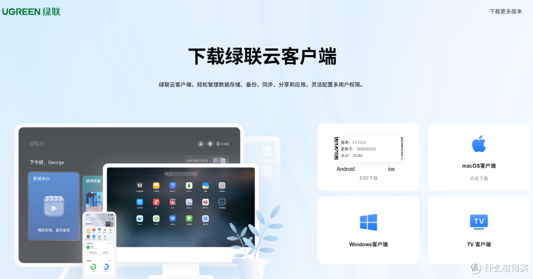 那么接下来就是绿联的多端同步功能了,首先绿联云客户端支持Windows、macOS、iOS、Android、Android TV和Apple TV全平台覆盖,数据同步无缝衔接。