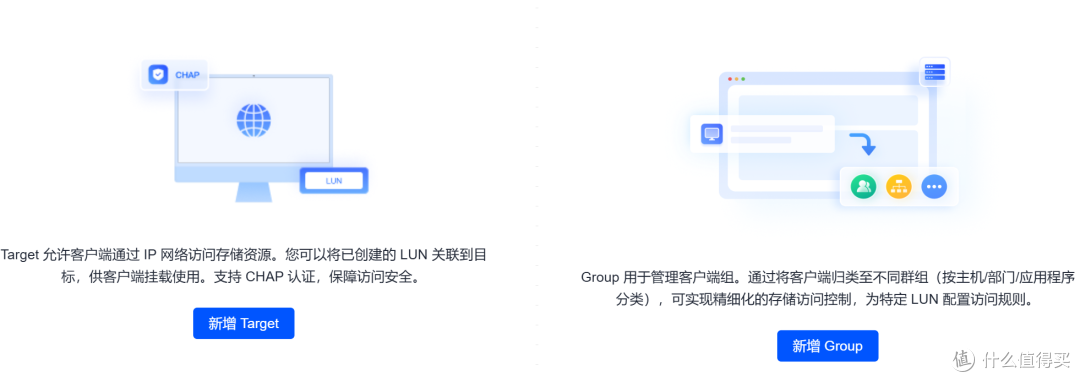 咱们创建了lum之后呢,有两种策略,简单来说target是独享,group是群享