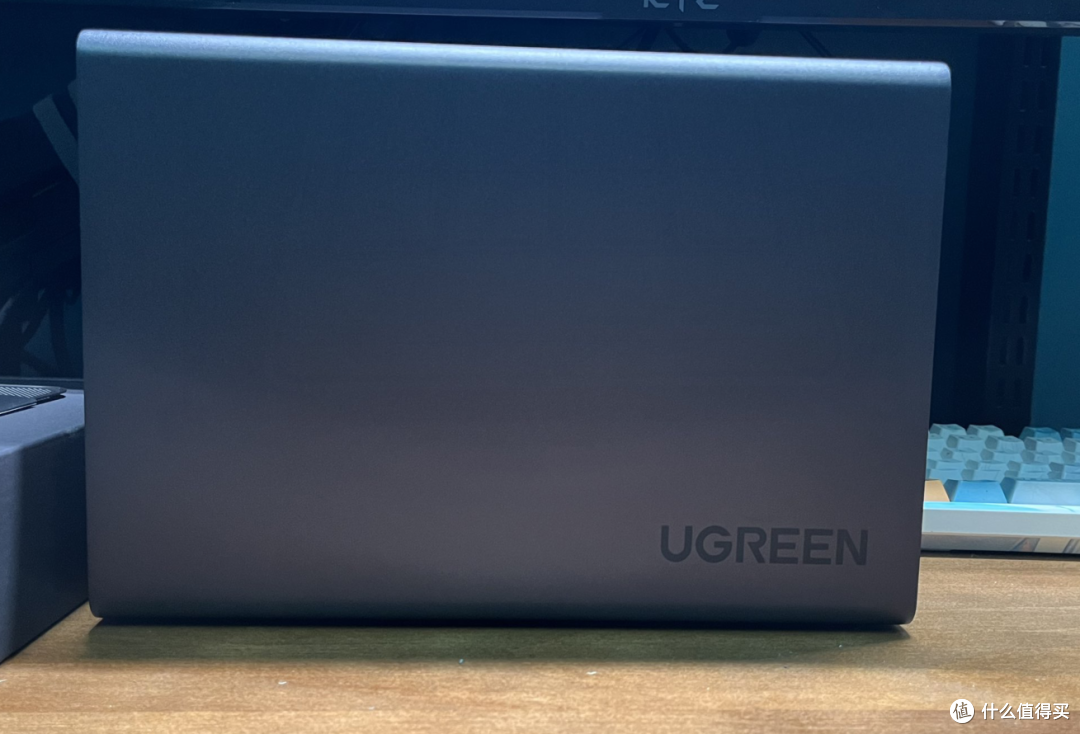 侧面则是UGREEN绿联独特标识,一体式阳极氧化铝合金机身美感尽显,侧边完美弧度,摸上去的手感,冰如铁,润如玉。