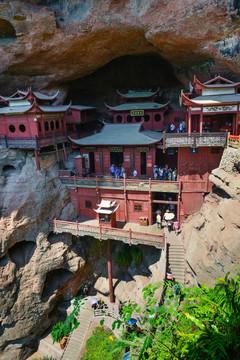 建筑风格与结构:大慈岩悬空寺位于浙江省杭州市建德市的大慈岩风景区。它是江南地区著名的悬空寺之一。寺庙建筑倚崖而建,经过700多年的扩建与完善,形成了宏伟壮观的建筑风格。悬崖上修建的洞穴建筑是大慈岩悬空寺的一大特色。主殿寺庙地藏王大殿一半嵌入岩腹,一半悬空,具有极大的观赏性。