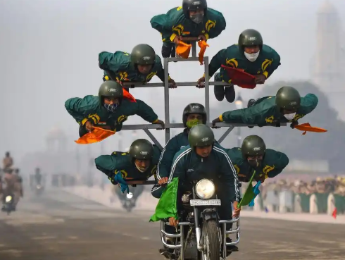 于是,莫迪在演讲中反复强调 “勇气”;媒体报道时,把阅兵式上的 “叠罗汉” 吹捧成 “军人无畏精神的极致体现”。他们成功构建了一套自洽的叙事:我们骑摩托车,不是因为没钱修公路、没预算买运输装备,而是因为我们勇敢、有技巧,还继承了光荣传统。