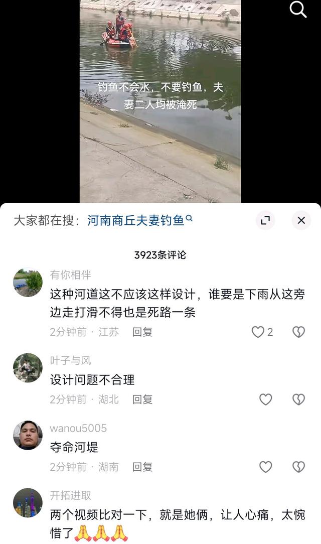 钓鱼本来是一件愉悦的事情,然而河南柘城县一对夫妻,却因钓鱼时不慎落水而发生溺亡事故,网友看了钓鱼现场环境后,却说:河道这样设计不合理。