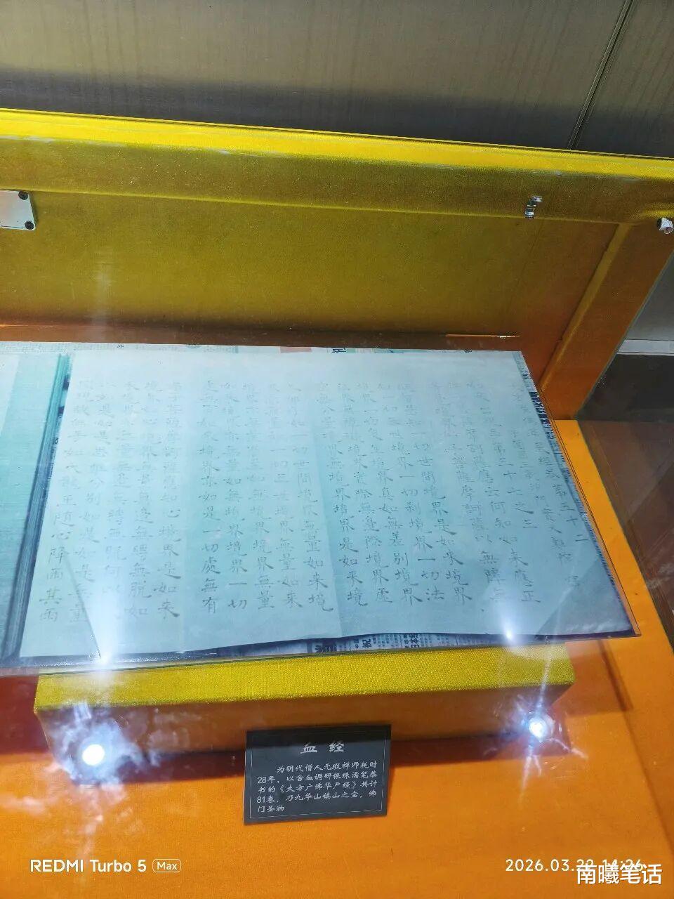 这里存放着清代信众根据佛经记载为金地藏精心制作的帽子和靴子,还有无瑕禅师撰写的血经。每一件物品都承载着历史的记忆,每一件物品都蕴含着深厚的宗教文化内涵,让人不禁对古人的虔诚和智慧肃然起敬。