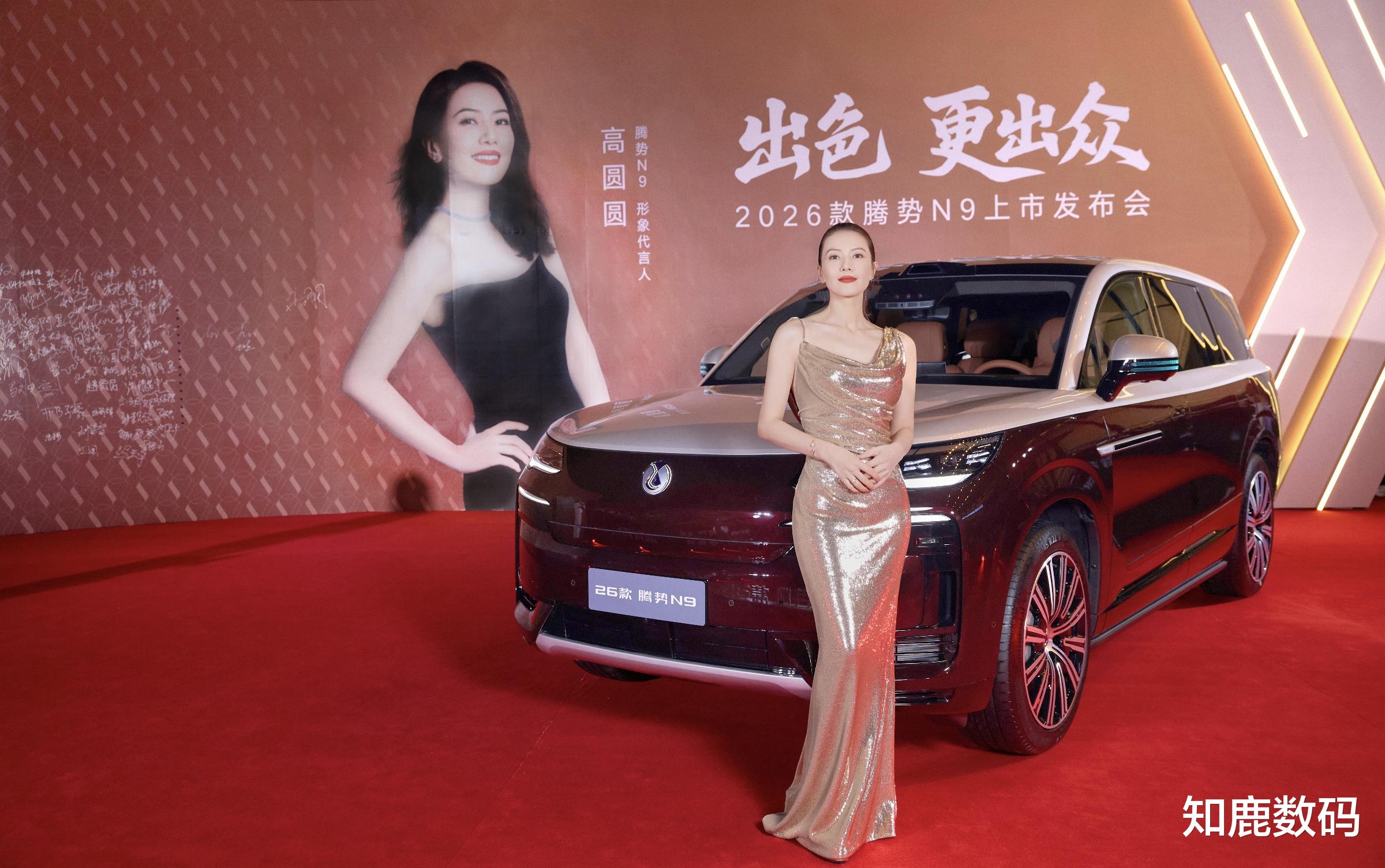 这代还新推“紫瑢金、红雅金、蓝辰银、绿华银”4款双色车身和“霜云茶”单色,并邀请国民女神高圆圆担任腾势N9形象代言人。