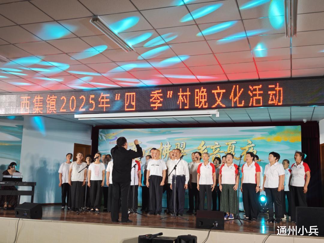 在西集镇“美在西集 品味乡愁”五月鲜花群众歌咏活动中,合唱队成员身着统一服装,以饱满的热情参加演唱。在西集镇2025年“四季村晚”文化活动中,合唱队再次亮相,不仅唱出了对祖国的热爱,更唱出了对家乡的深情,赢得了现场观众的阵阵掌声。