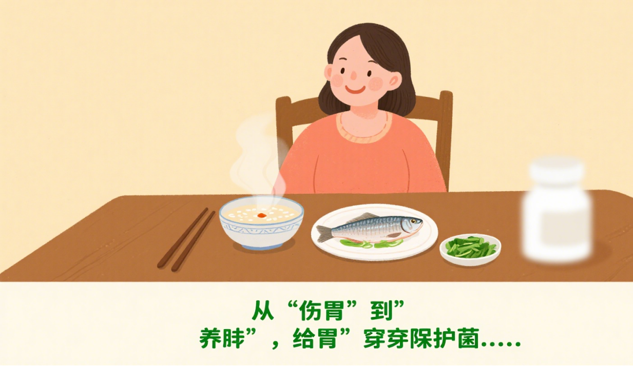 ·少吃伤胃食物(辛辣、油腻、烟酒),多吃养胃食物(小米粥、南瓜、山药),注意身体信号及时就医,必要时使用胃黏膜保护剂。