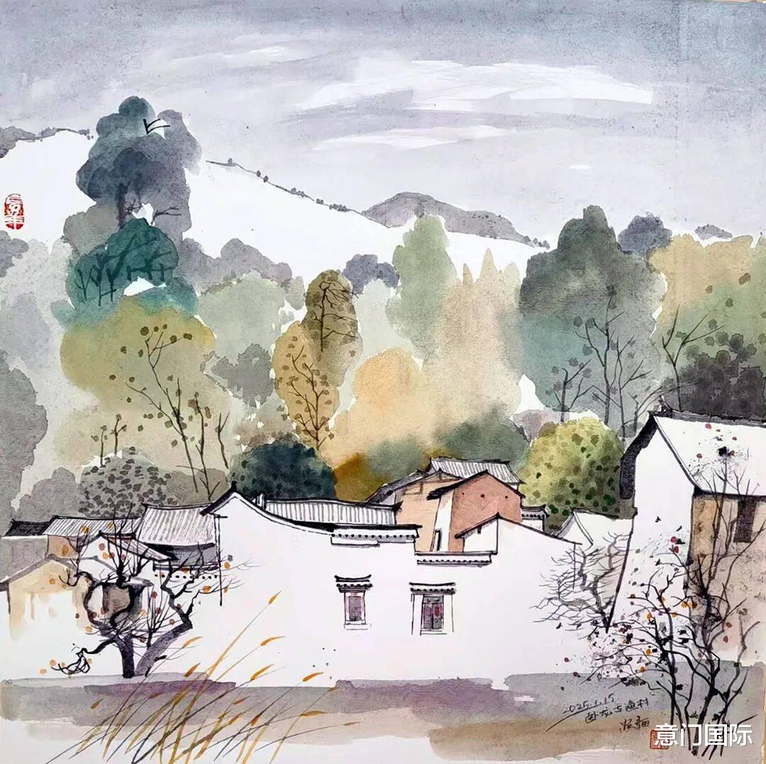 李家骝 卧龙古渔村 设色纸本 60×60cm 2025年