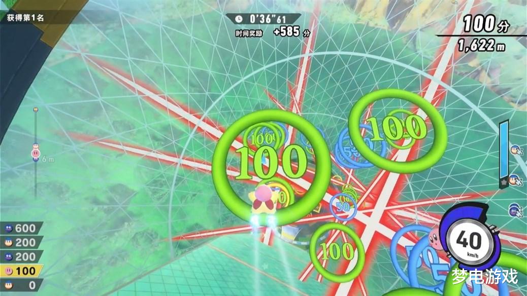 接着是融合了高强度对抗的 “城市竞赛”模式。此模式是“驭天飞行”的核心特色,更是星之卡比“赛车”的绝对主权地。在开放的无赛道场景内,不仅布满了敌兵和道具箱,还设置了各种事件和更具攻击性的对手。