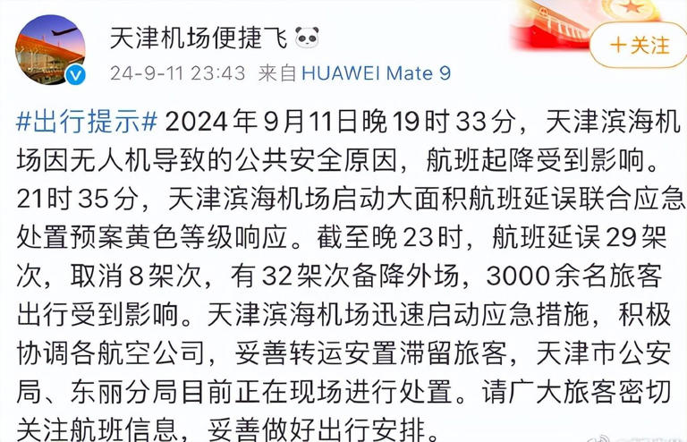 2024 年 9 月 11 日晚星期三,一起由无人机引发的航班大面积延误事件引起了广泛关注。