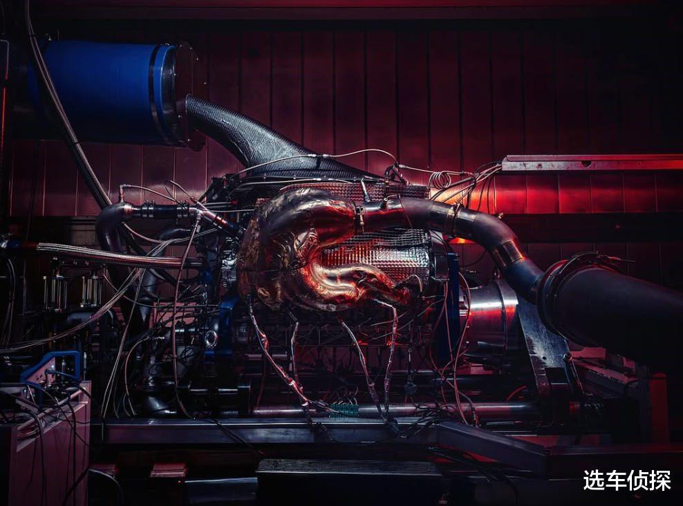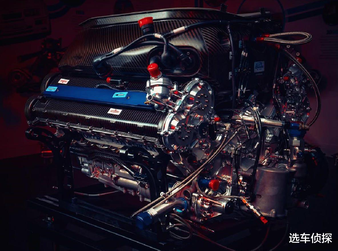 虽然红牛有自己的工程部门,但制造发动机一直不是强项,而是与福特、、雷诺、本田等公司合作,因此红牛的第一款车RB17选择了第三方供应商的引擎,由英国的考斯沃斯参与开发。这是一台排量4.5L的自然吸气V10,设计哲学直接源自90年代末的F1发动机:小活塞、短行程、高转速、低旋转惯量,红线转速达到15000 rpm,这要比普通的量产车转速快了一倍,高频尖啸的声浪,接近老式F1赛车,原始机械感也是这个时代缺乏的,折让红牛可以与其他跑车差异化竞争。