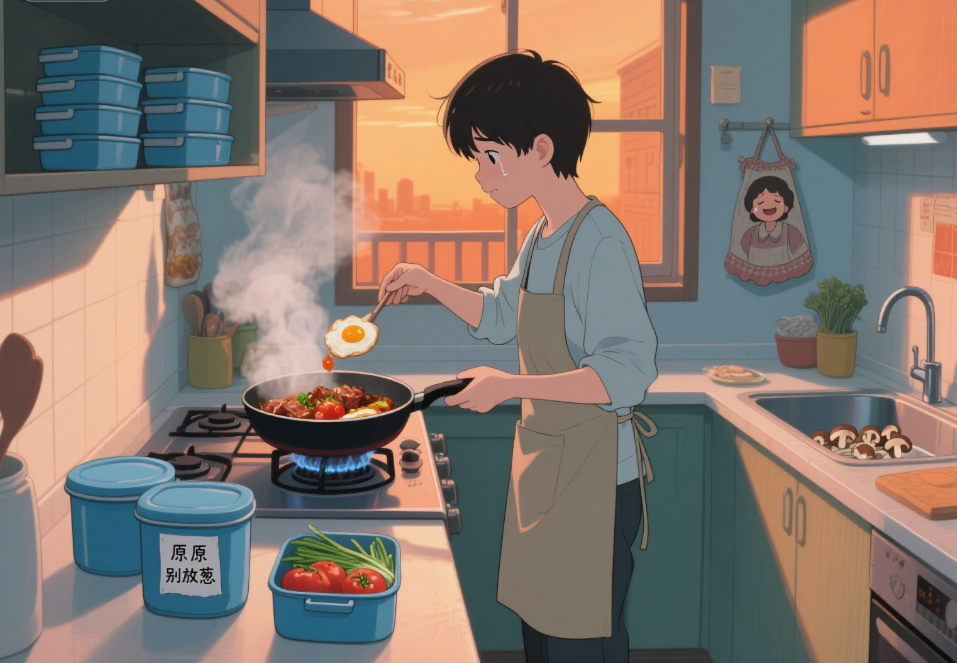 有次我随口提了句 “不爱吃葱,总觉得冲”,第二天打开饭盒,番茄炒蛋里果然没半点葱星子。我拿着饭盒敲开阿姨家门,眼眶有点热:“阿姨,您怎么记这么清楚?”