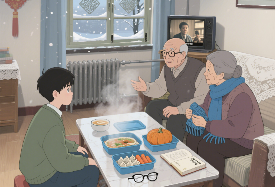 我敲开王爷爷家的门,他正坐在沙发上看电视,手里捧着个热水袋:“小李来了?快进来,外面冷。” 我走进屋,暖气扑面而来,客厅里飘着萝卜的香味 —— 他炖了萝卜汤,知道我冬天爱喝。