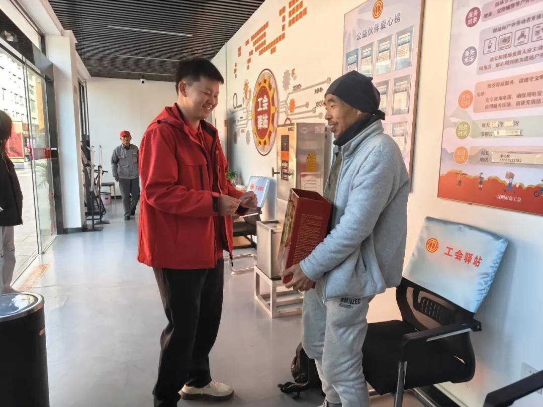 “感谢昆明工会和爱心企业的惦记和关怀,在春节快来的时候能收到这份暖心饮品,心里特别踏实,这份关怀让我们知道,自己的付出被看见、被牵挂,再苦再累也值得。”环卫工人何友华捧着饮品感慨道。捐赠仪式结束后,这批承载着温暖的饮品被第一时间送往昆明市工人文化宫工会驿站,送到正在此处休息的户外劳动者手中。驿站内,环卫工人、骑警等陆续接过饮品,脸上洋溢着幸福的笑容。