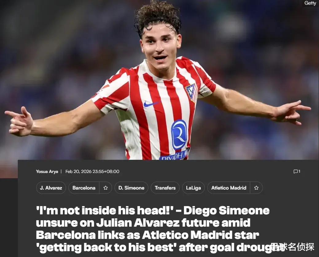 阿尔瓦雷斯和巴萨的传闻日益密切,而马竞主帅西蒙尼似乎对此无能为力,他表示自己也不知道阿根廷人心里的想法。