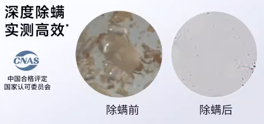 (2)核心除螨与杀菌亮点:多技术协同,实现100%除螨率与99.99%除菌率。