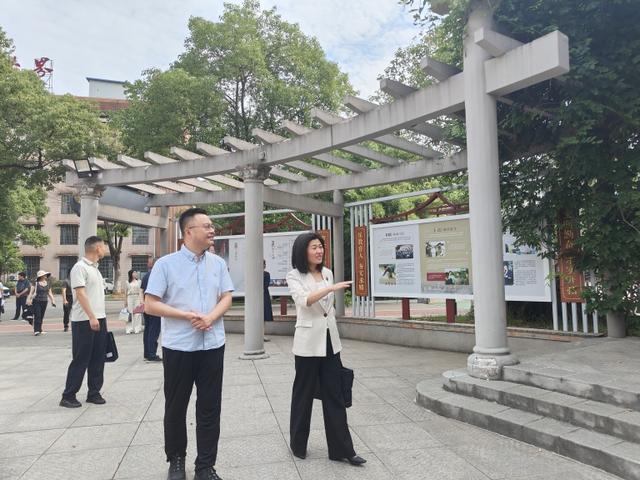踏入湘机中学校园,调研组首先在党委书记唐新球和校长王锦兵陪同下参观校园,重点了解“电中魂”雕塑和培民广场的文化建设。“电中魂”雕塑庄严肃穆,承载着学校的历史记忆与精神传承;培民广场绿树环抱,红色文化元素巧妙融入其中,成为师生们汲取精神力量的重要场所。调研组一行驻足欣赏,深刻感受到学校红色文化的独特魅力。