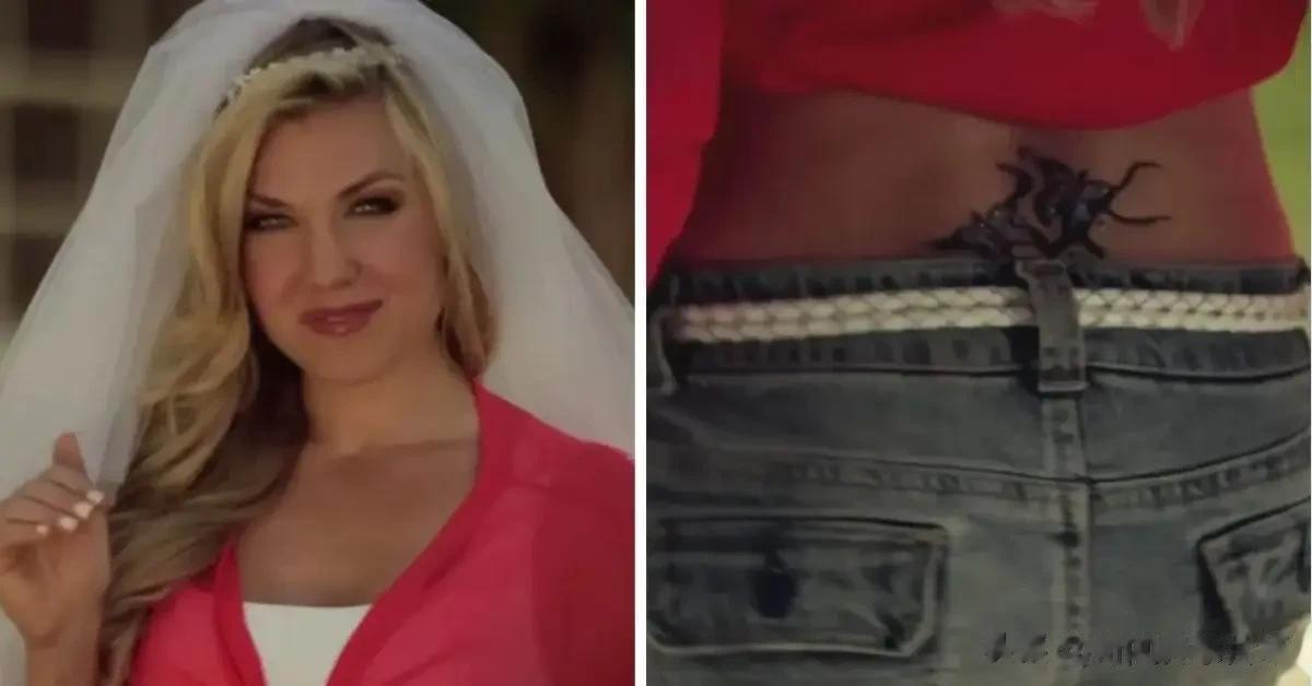 在这段视频中,埃里卡穿着一件粉色短款上衣、短款牛仔短裤,身上纹有流浪者邮票纹身,纹身上有两只振翅欲飞的蝴蝶。