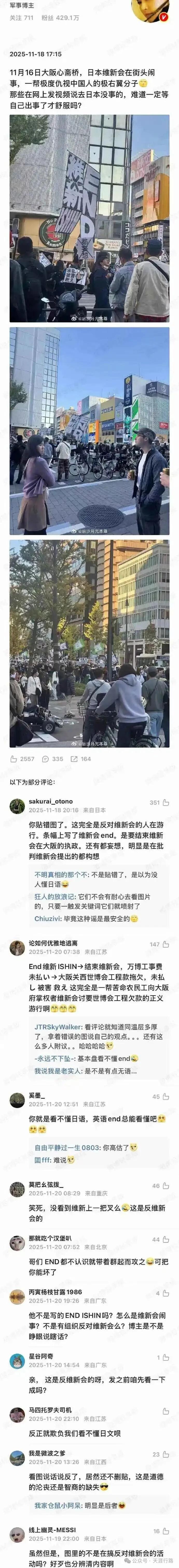 相比该专业领域的博主,评论区的网民根据翻译内容所言,更能说服人:是一帮苦命的农民工在向大阪府掌权者维新会讨要工程欠款的正义游行。