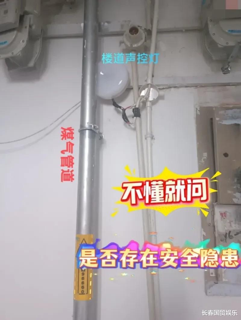 近日,长春国贸看到有网友爆料称,长春市朝阳区西安胡同1267号楼,工作人员为了图省事儿,将楼道内的声控灯简单接通后直接悬在墙上,没有任何支撑;有的楼层甚至将声控灯夹放在燃气管道和墙壁之间,请问:这样是否符合安全标准,存在安全隐患?为何无人管?