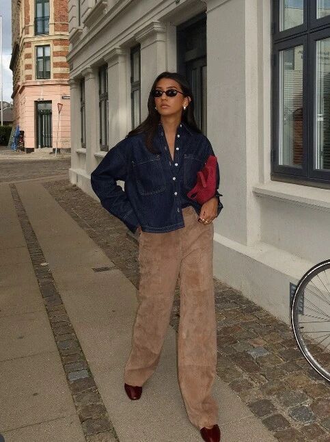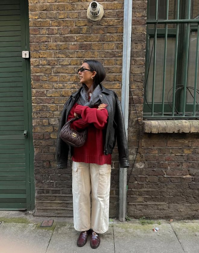 ① 选单品:硬朗材质 + 廓形版型皮衣 / 机车夹克:瞬间增加凌厉感。宽松牛仔裤 / 工装裤:率性、不拘谨。廓形西装:用线条感制造强势气场。