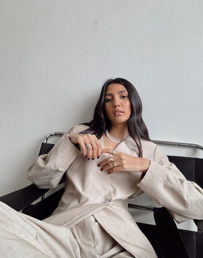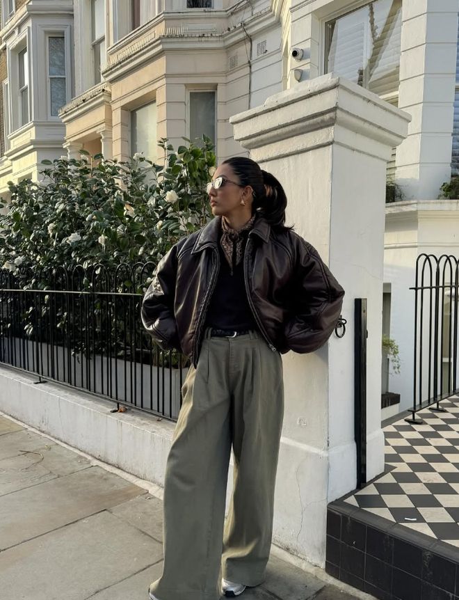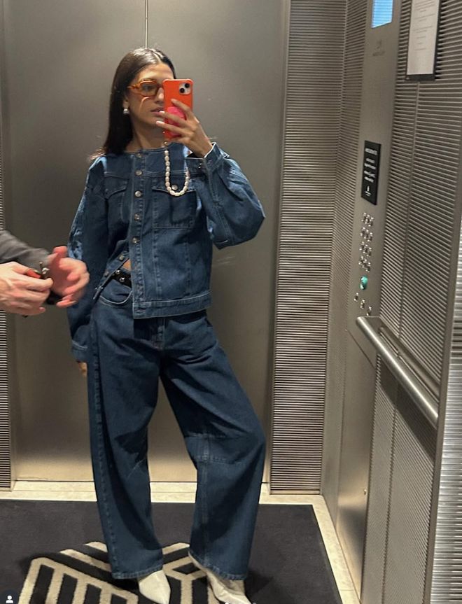 Sapna Rao 的穿搭告诉我们:酷飒感并不是靠复杂堆砌,而是靠“简洁硬朗的单品 + 自信拽拽的气质”组合出来的。