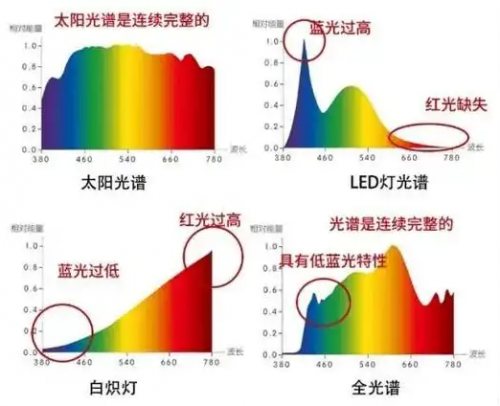 在相同照度与色温(4000K)下,使用专业光谱仪分别测试三款台灯的光谱曲线,并记录关键波段峰值。
