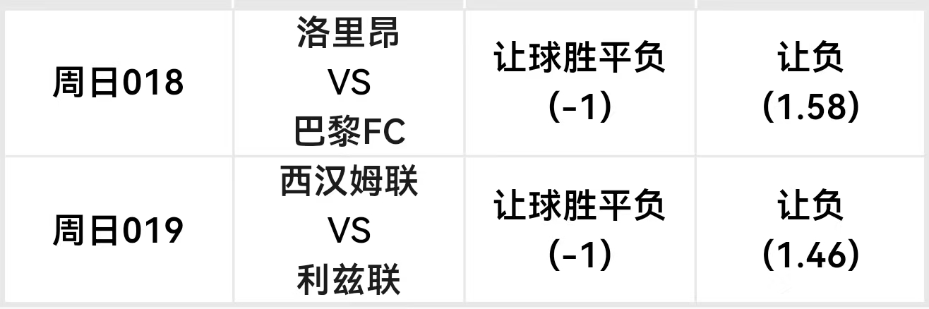 🔹 周日018 法甲:洛里昂 vs 巴黎FC(23:15)