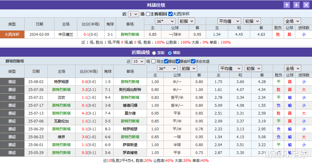对阵背景:这场比赛好就好在双方有过1场近期的直接往绩交手,这极大的准确性了本场比赛的筹码倾向性判断,因为双方直接往绩交手对于筹码倾向性的准确判断几乎是必要条件。双方这场唯1的往绩交手是1场爆冷,从中可以看出双方的实力差距,以及爆冷结果,从而结合双方近来战绩情况判断,本场比赛的筹码倾向性并不集中。