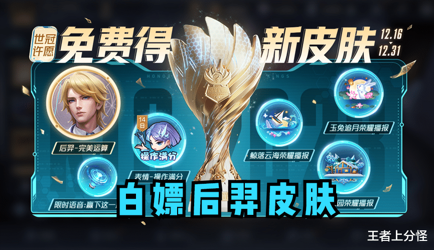 皮肤上线后羿的白嫖皮肤上线,通过许愿活动即可免费得到。蒙犽的源梦皮肤-百解令上线,嫦娥的六元秒杀皮-拒霜思上线。
